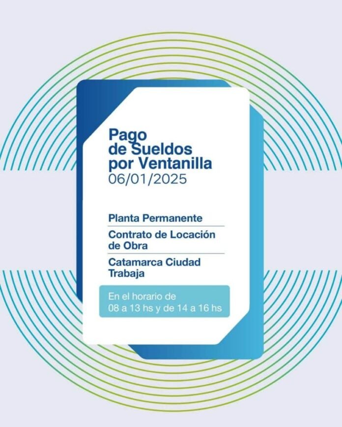 Según el comunicado oficial, ese día percibirán sus haberes los trabajadores de planta permanente, los contratos de Locación de Obra y los beneficiarios del programa Catamarca Ciudad Trabaja.